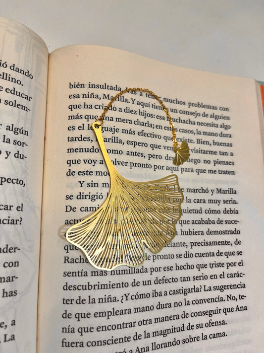 Marcador de libros metálico hoja de ginkgo