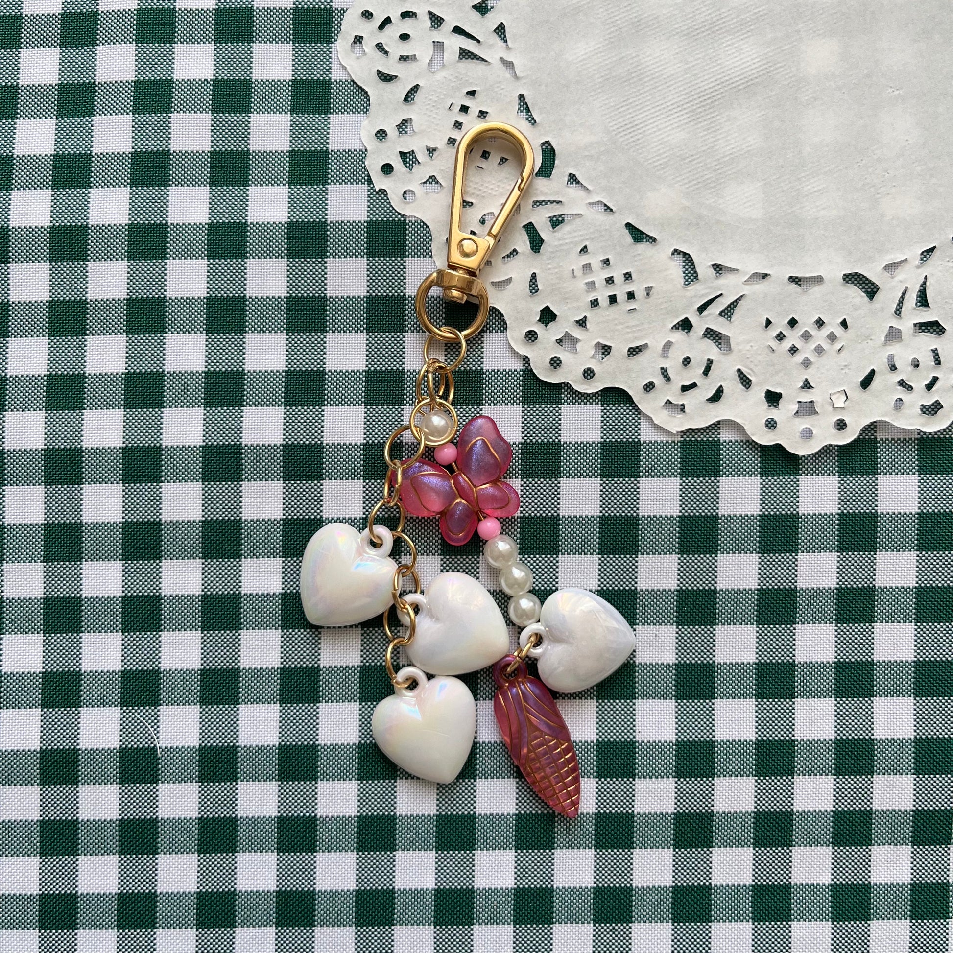 Llavero o charm corazones y mariposa
