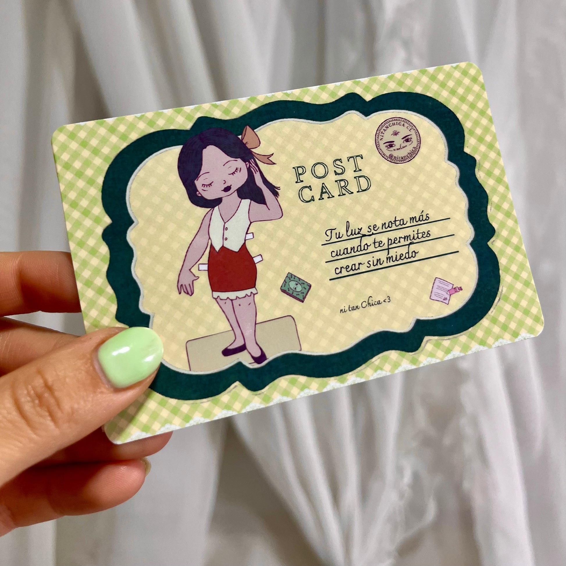 Postal inspiradora de Ni tan Chica, creada para encender chispitas de creatividad. Ideal para tu journal, para regalar o dejar en tu rincón favorito.