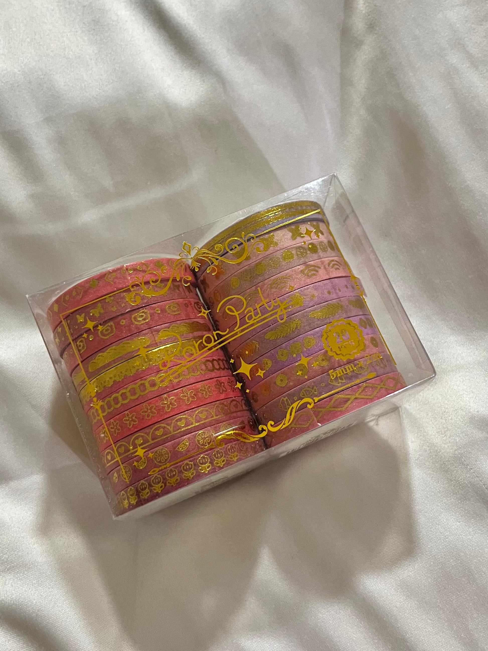 Set de 20 delgaditos washitape con detalle de folia dorada. Un precioso set que será tu aliado en tu proyecto de Art Journal, diario creativo o manualidades.